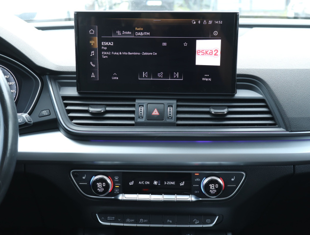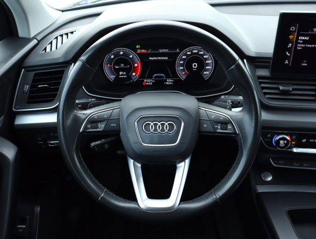 Ta Audi Q5 pochodzi z Polski i jest wyposażona w mocny silnik diesla 40 TDI o pojemności 1968 cm3 i mocy 204 KM. Samochód posiada elektroniczną książkę serwisową, a ostatni serwis odbył się 14 października 2024 roku. Skrzynia biegów jest automatyczna, a napęd hybrydowy zapewnia dodatkowe możliwości. Audi Q5 oferuje adaptacyjne reflektory oraz przednie światła LED, które poprawiają widoczność podczas jazdy. Fotele są podgrzewane, co zwiększa komfort w chłodne dni, a klimatyzacja automatyczna pozwala na łatwe utrzymanie odpowiedniej temperatury. Wirtualny kokpit dostarcza kierowcy nowoczesnych funkcji, a ładowanie bezprzewodowe umożliwia wygodne korzystanie z urządzeń mobilnych.