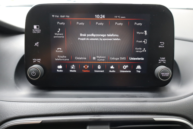 Ten Fiat Tipo pochodzi z Polski i jest wyposażony w efektywny silnik benzynowy 1.0 FireFly o pojemności 999 cm3 i mocy 99 KM. Pojazd posiada książkę serwisową, a ostatni przegląd został wykonany 28 lutego 2025 roku. Fiat Tipo oferuje klimatyzację, która zapewnia komfort podczas podróży. Wyposażony jest w system stabilizacji toru jazdy, który zwiększa bezpieczeństwo. Tempomat umożliwia wygodną jazdę na dłuższych trasach. Kierownica jest skórzana i wielofunkcyjna, co ułatwia obsługę funkcji pojazdu. Dodatkowo, Bluetooth pozwala na bezprzewodowe połączenie z urządzeniami mobilnymi.