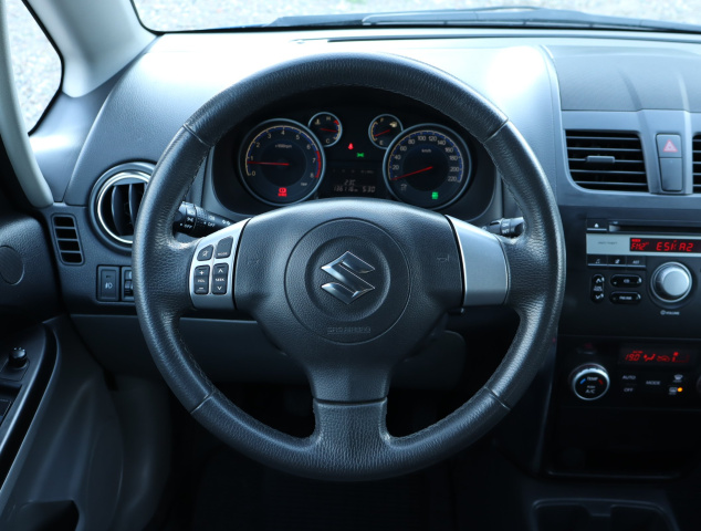 To Suzuki SX4 pochodzi z Polski i jest wyposażone w efektywny silnik benzynowy 1.6 VVT. Silnik o pojemności 1586 cm3 generuje moc 120 KM. Pojazd posiada książkę serwisową, a napęd 4x4 zapewnia doskonałą trakcję w różnych warunkach. Suzuki SX4 oferuje automatyczną klimatyzację, która pozwala na łatwe utrzymanie komfortowej temperatury. Wyposażenie obejmuje bezkluczowe otwieranie i uruchamianie auta, światła przeciwmgielne oraz tylne czujniki parkowania. Kierownica jest skórzana i wielofunkcyjna, co ułatwia obsługę pojazdu.