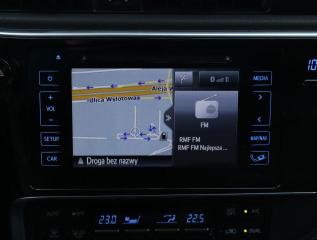 Ta Toyota Auris pochodzi z Polski i jest wyposażona w hybrydowy silnik benzynowy o pojemności 1798 cm3 i mocy 136 KM. Pojazd posiada książkę serwisową, a ostatni serwis odbył się 6 lutego 2025 roku. Istnieje możliwość odliczenia podatku VAT. Toyota Auris oferuje automatyczną klimatyzację, która zapewnia wygodę podczas jazdy. Fotele są skórzane i podgrzewane, co zwiększa komfort użytkowania. Kierownica jest skórzana i wielofunkcyjna, co ułatwia obsługę funkcji pojazdu. Dodatkowo, samochód posiada przednie światła LED oraz system stabilizacji toru jazdy, co wpływa na bezpieczeństwo i widoczność.