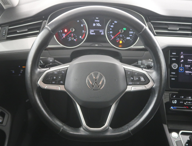 Ten Volkswagen Passat pochodzi z Polski i jest wyposażony w efektywny silnik benzynowy 1.5 TSI o pojemności 1498 cm3 i mocy 149 KM. Samochód posiada automatyczną skrzynię biegów, co zapewnia płynną i wygodną jazdę. Passat oferuje przednie światła LED, które poprawiają widoczność i bezpieczeństwo na drodze. Fotele są podgrzewane, co zwiększa komfort w chłodne dni. Klimatyzacja jest automatyczna, a skórzana, wielofunkcyjna kierownica z łopatkami zmiany biegów ułatwia sterowanie pojazdem. Dodatkowo, system stabilizacji toru jazdy wspiera kierowcę w trudnych warunkach.